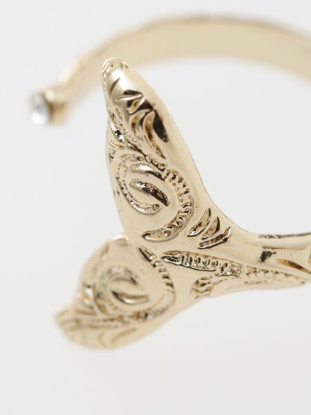 ホエールテールにハワイアンジュエリー調の彫りが施されたトゥーリング。くるりと指を囲う先でキラッと輝くクリアストーンがポイントです。